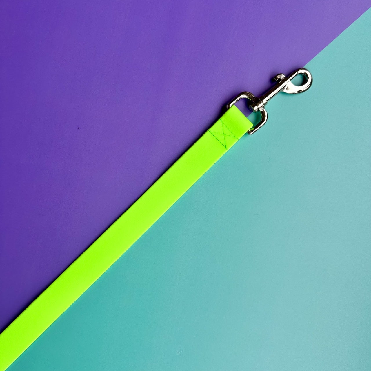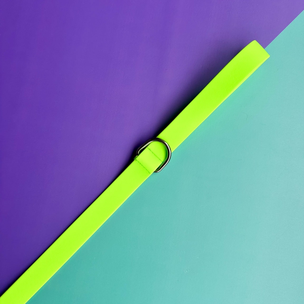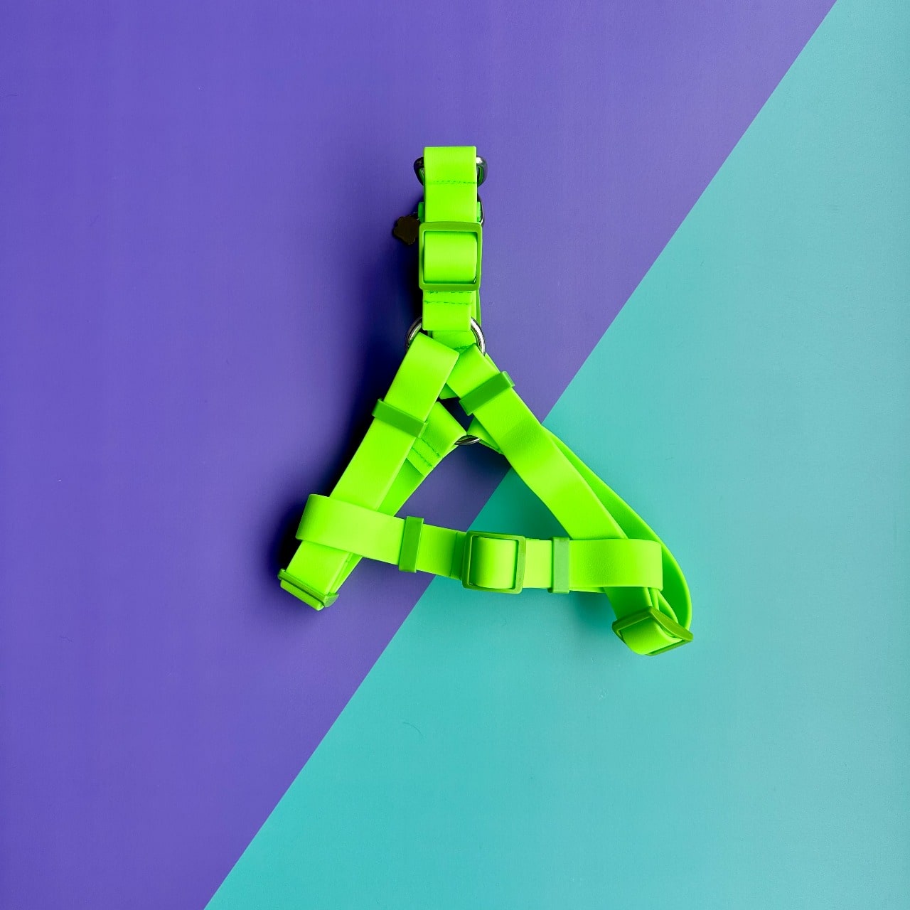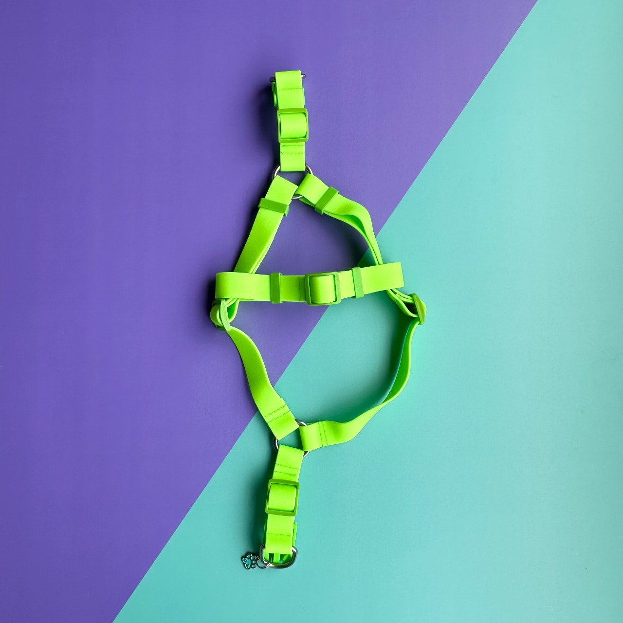 Arnés para perros en goma impermeable, verde neón, resistente e hipoalergénico.