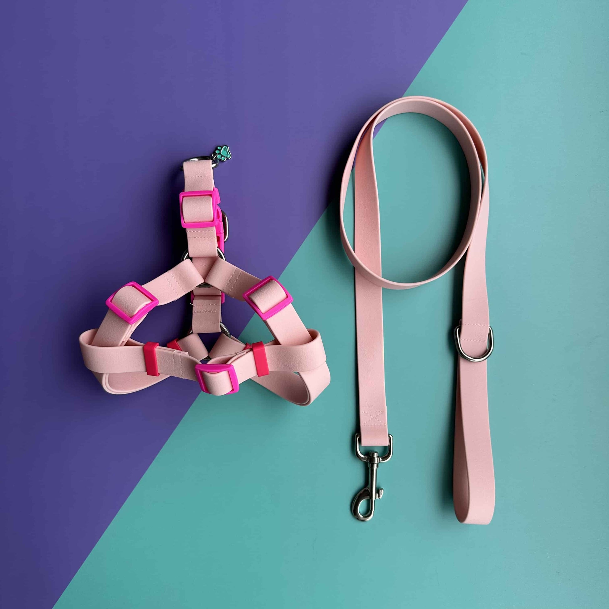 Arnés para perros en goma impermeable rosado con correa