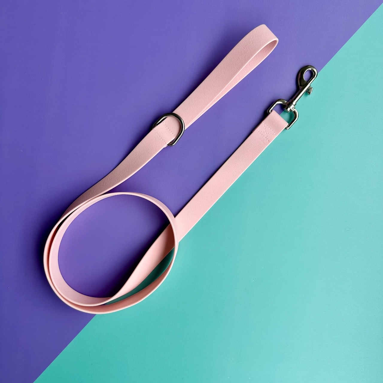 Arnés para perros en goma impermeable rosado y fucsia con correa