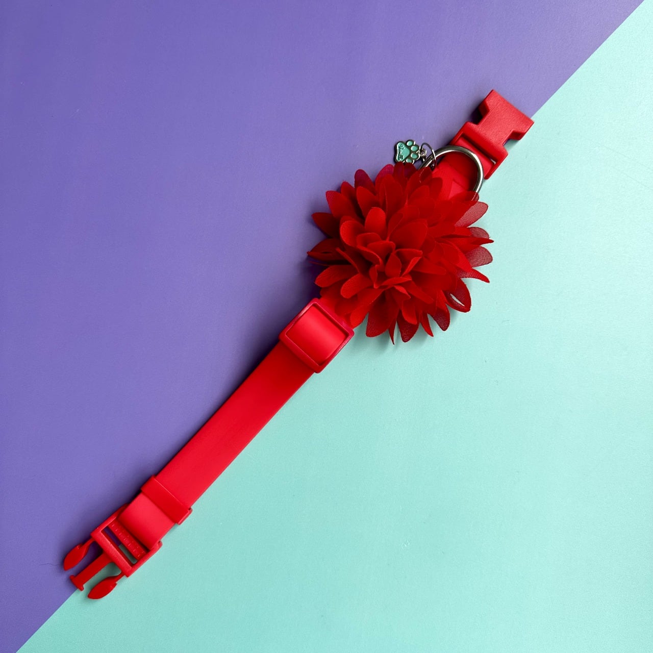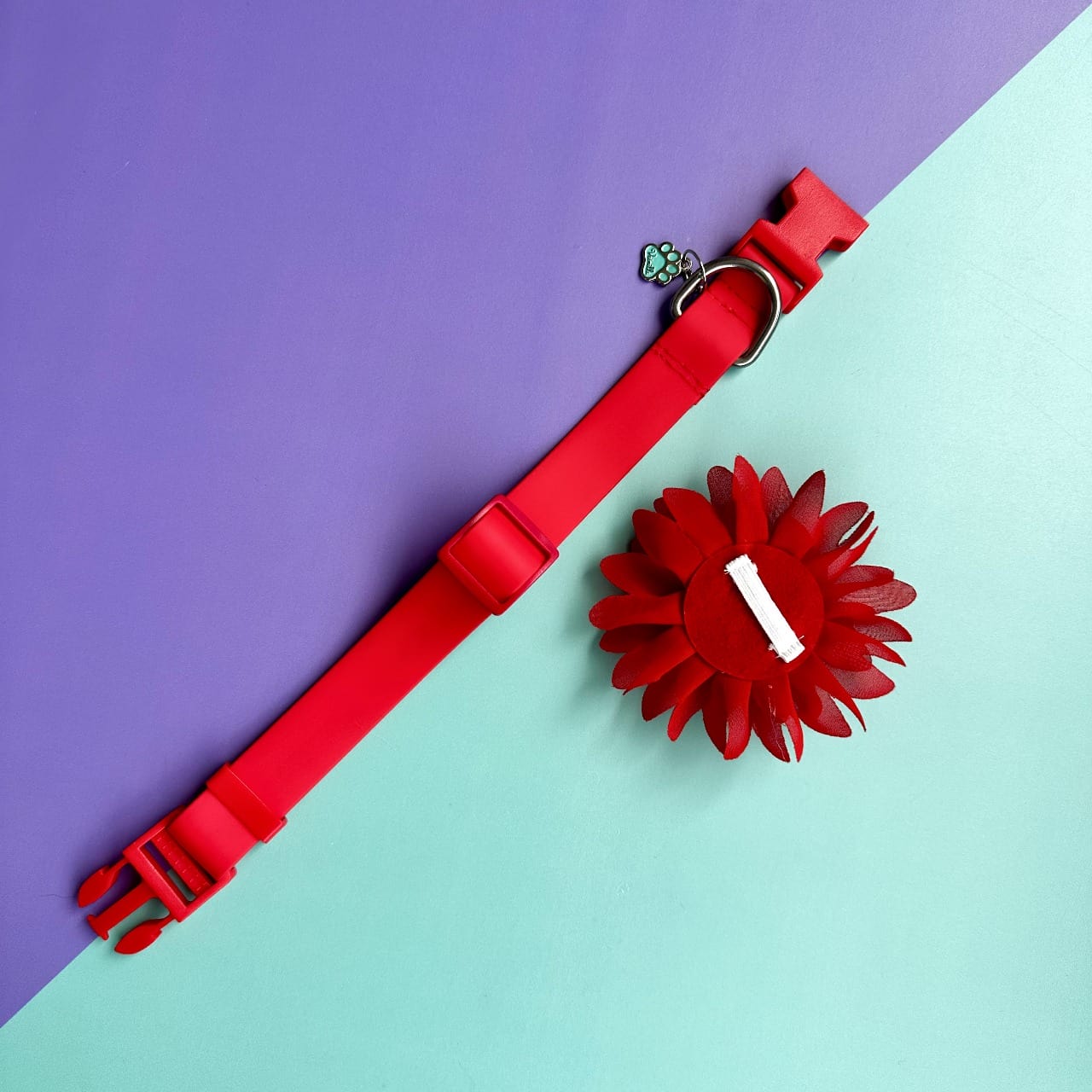Collar para perros en goma rojo con flor seda