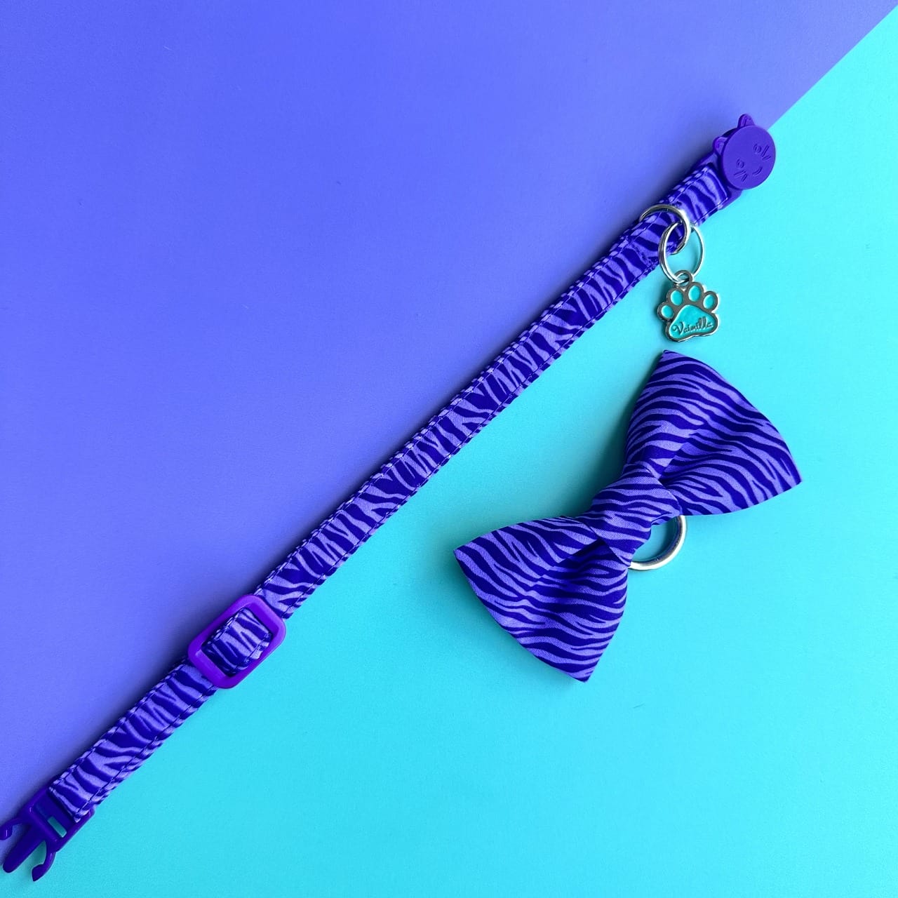 Corbatín para gatos Cebra lila: un toque de elegancia y encanto en el look de tu amigo más ronroneador ¡siempre a la moda!