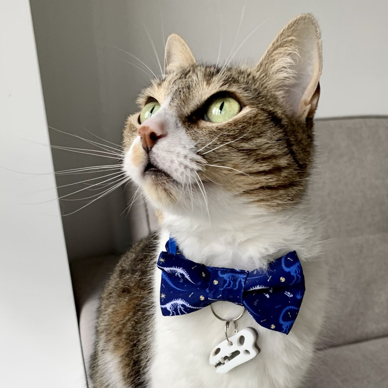 1. El de gato o broche de seguridad, se suelta en caso de que el gato se quede enredado evitando que se ahogue, éste también se suelta fácil si el gato hala o muerde el collar.
